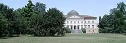 A rural house at this site was first commissioned in the first half of the 17th century by the Besenzi family. However the layout we see today was mainly due to reconstructions that took place between 1790 and 1830, under the designs of Domenico Marchelli, who also help layout the Gardens and the long staircase leading from the South facade to the garden. The metal cupola dome was designed by Luigi Poletti, and included a telescope. Man of the salons acquired the Neoclassical stucco decoration.