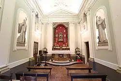 The Chapel was built in 1771 and is attached to the right wing of the villa with an entrance from the north side. The marchese used to enjoy Papal Mass from a private balcony that connected the chapel with his suite on the noble floor. Because of his close ties to the Vatican and the Pope, the chapel contains a remarkable collection of Christian relics, such as those of Saint Potenziana, Saint Ruffina, and Saint Vincenzo Martire. The final resting place of St. August was also there. He was found hidden behind the wall, preserved from the German invasion.[10]