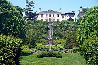 The surrounding bluff is landscaped with terraces and formal gardens, a "water stairway," fishponds, and two secret gardens.[6] Rose Standish Nichols is credited with the original landscape design.[4] No record of her plan for the Smith residence has been found.