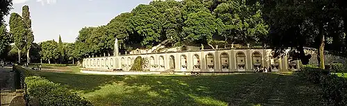 The Villa Torlonia in Frascati was a villa belonging to the Torlonia family in Frascati, Italy. The gardens have long been famous, and after bombing in World War II are now all that survive, mostly as a public park.