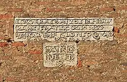 Detailed view of the first pillar of the ossuary: "TV QVE ME MIRAS A MI TAN TRISTE MORTAL Y FEO COMO TV TE VES ME VI TE VERAS COMO ME VEO"