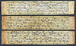 The word Vinaya is derived from a Sanskrit verb that can mean to lead, take away, train, tame, or guide, or alternately to educate or teach.[2] It is often translated as "discipline", with the term Dhamma-Vinaya (doctrine and discipline) being used by the Buddha to refer to his complete teachings, suggesting its integral role in Buddhist practice.[3] Thus, Vinaya also denotes the living tradition of ethical training and cultivation which encompasses inner moral discipline, and the communal process of ethical deliberation and confession within the sangha. In this sense, vinaya is not only legalistic but also pedagogical and soteriological, oriented toward the purification of ethical conduct (śīla) as a foundation for meditative concentration (samādhi) and wisdom (prajñā).