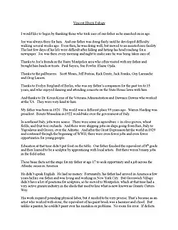 While the national Veterans' Administration preferred to use markers flush to the ground to make it easier to mow the grass and maintain the grounds, Illuzzi recalled his father's work as a sculptor in the granite industry and knew that markers flush to the ground are not as visually significant and their use would certainly undercut the Barre granite industry and the West Rutland and Proctor marble industry.