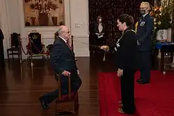 In the 2000 Queen's Birthday Honours, O'Sullivan was appointed a Distinguished Companion of the New Zealand Order of Merit, for services to literature.[18] In 2009, following the restoration of titular honours by the New Zealand government, he initially declined redesignation as a Knight Companion of the New Zealand Order of Merit,[19] because, in his view, it did not fit New Zealand "historically and socially", and that "it didn't seem to make much sense in contemporary New Zealand society".[20] However, he accepted the change in December 2021.[21]