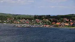 Vindeby is a town on the island of Tåsinge in south-central Denmark, in Svendborg Municipality. It lies on the north coast of Tåsinge, across from Svendborg on the Funen side, to which it is connected by the Svendborgsund Bridge.