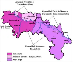 Based on topographical and climatic variation, Rioja is divided into three wine-producing sub-zones with distinct characteristics: Errioxa Beherea (Rioja Baja), Arabako Errioxa (Rioja Alavesa), and Errioxa Garaia (Rioja Alta), with the latter located exclusively within the Rioja region.[24]