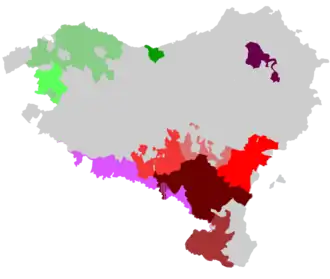 - ^ List of counties and municipalities: Enkarterri: Zalla and Balmaseda, Txorierri: Lezama and Zamudio, Durangaldea, Mungialdea and Lea-Artibai.