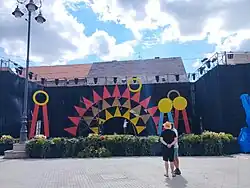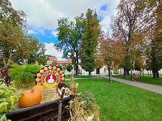 ![]() Festival decorations in the city park with the Church of Saints Eusebius and Polion in background | |