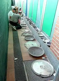 Initially the finds were put in display for a short time in Vinkovci in the condition in which they were found.[6] They were later moved to the Archaeological museum in the capital where they are to be conserved and studied.[3] It is intended that they will ultimately be returned to the City Museum in Vinkovci where they will be put on permanent display, possibly in a new building dedicated for that purpose.[7] According to the museum's Hrvoje Vulić, "This will be our kind of Mona Lisa. So you go to the Louvre to see the Mona Lisa, but then you look at everything else. Thus we also hope that this treasure will attract more people to Vinkovci."[9]