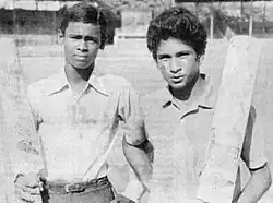 He shared an unbroken partnership of 664 runs with Sachin Tendulkar in a school cricket match against St. Xavier's School, Fort. Kambli contributed 349 runs before their coach Ramakant Acharekar forced the pair to declare the innings; he then took six wickets for 37 runs in St. Xavier's first innings.[15]
