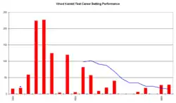 He has the highest career batting average for an Indian test cricketer of 54[5][6] but he played his last test when he was just 23 years old. Thereafter, he was only considered for One Day International matches, although his last appearance in that format was also at the young age of 28.[7][8]