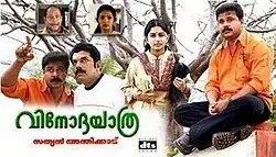 Vinodayathra (transl. Leisure Trip – transl. Vinod's Journey ) is a 2007 Indian Malayalam-language comedy drama film written and directed by Sathyan Anthikkad, and starring Dileep and Mukesh along with Meera Jasmine, Murali, Innocent, Ganapathi S Poduval, KPAC Lalitha, Nedumudi Venu, Seetha and Parvathy in supporting roles.[1][2][3] Few scenes of the film were reported to be inspired by the 2001 Korean film My Sassy Girl.[3] The film became a blockbuster at the box office and completed more than 175 days in theatres and it has over the years attained a cult status.[4]
