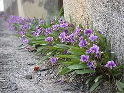 As a violet, its trumpet-shaped flowers have five petals and bilateral symmetry. The lowermost petal is often the smallest, and all petals are typically a rich purple hue, though this can vary due to local conditions or localized mutations, and in some varieties deliberately bred for differing appearance. It blooms from April to May and the fruiting period is from May to September.[3][4]