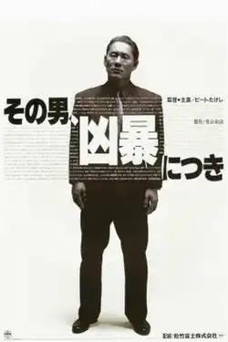 Violent Cop (その男、凶暴につき, Sono Otoko, Kyōbō Ni Tsuki; lit. 'Warning, This Man is Wild')[1] is a 1989 Japanese neo-noir action thriller film directed by Takeshi Kitano, written by Kitano and Hisashi Nozawa, and starring Kitano, Maiko Kawakami, Makoto Ashikawa, Hakuryu, Ken Yoshizawa, and Ittoku Kishibe.[2] It follows Azuma, a Japanese police detective known for his rough and unprofessional conduct, after he is assigned to investigate drug trafficking by the yakuza. It was Kitano's directorial debut, and marked the beginning of his career as a filmmaker.[3] Takeshi Kitano rewrote most of the film's original screenplay by Hisashi Nozawa.[4]