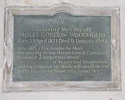 Violet Gordon-Woodhouse (23 April 1872 – 9 January 1948) was a British keyboard player. She specialised in the harpsichord and clavichord, and was influential in bringing both instruments back into fashion. She was the first person to record the harpsichord, and the first to broadcast harpsichord music.[1]