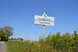 Viré-Clessé is an Appellation d'Origine Contrôlée (AOC) for white wine in the Mâconnais subregion in Burgundy in central France, located in the communes of Clessé, Laizé, Montbellet and Viré.[1] Viré-Clessé has Chardonnay as the only allowed grape variety.[2] There are no Premier Cru vineyards within the AOC. The AOC was created in 1999, when this area was upgraded to be a communal-level appellation of its own ("a separate Mâconnais cru" similar to e.g. Pouilly-Fuissé) rather than being part of the subregional Mâcon AOC, which covers a much larger area. Before the Viré-Clessé AOC was created, the wines could be labelled Mâcon-Vire or Mâcon-Clessé.