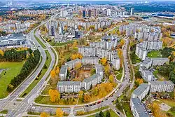 Before the neighborhood was incorporated into Vilnius city municipality in 1969, it was a small settlement. After the incorporation, in 1977, new residents started to move here to the newly built multistorey Soviet apartment blocks.