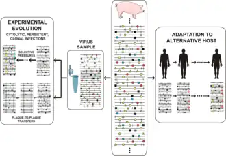 - ^ a b Elena SF, Agudelo-Romero P, Carrasco P, Codoñer FM, Martín S, Torres-Barceló C, Sanjuán R (May 2008). "Experimental evolution of plant RNA viruses". Heredity. 100 (5): 478–83. Bibcode:2008Hered.100..478E. doi:10.1038/sj.hdy.6801088. PMC 7094686. PMID 18253158.