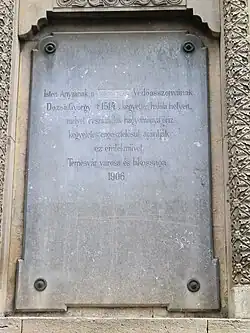 To the Mother of God, the Patroness of the [Hungarians]. On the site of the cruel death of György Dózsa († 1514), which has been preserved for centuries, the city and the people of Timișoara offer this monument as a pious atonement. 1906. |