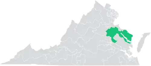 The district overlaps with Virginia's 1st and 7th congressional districts, and with the 54th, 55th, 97th, 98th, and 99th districts of the Virginia House of Delegates.[4]