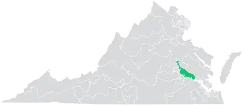The district overlaps with Virginia's 1st and 4th congressional districts, and with the 55th, 68th, 69th, 70th, 71st, 72nd, 73rd, and 74th districts of the Virginia House of Delegates.[4]