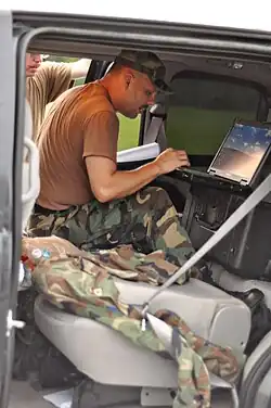 Members of the Virginia Defense Force and the Virginia National Guard operate a mobile command post to test communications capabilities.