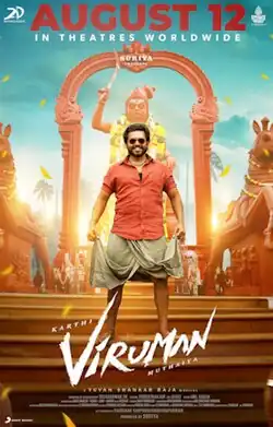 Viruman is a 2022 Indian Tamil-language action drama film[2] written and directed by M. Muthaiah. Produced by Suriya under 2D Entertainment, the film stars Karthi,Aditi Shankar,Prakash Raj, Rajkiran and Soori.[3] Yuvan Shankar Raja composed the music with cinematography by Selvakumar S. K.[4][5] It was released theatrically on 12 August 2022 and emerged as a commercial success at the box office.[6][7]This is the last film of Manoj Bharathiraja, in an acting role, who died in 25 March 2025