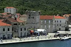 The Perasti tower, kaštil, was built of Vicko of Perast in Bay of Kotor, in 1617. He requested permission to construct from the general commissioner which he received on December 16, 1616. There is not much information about Vicko of Perast, the builder of the tower. The earliest document in which he is mentioned dates back to 1587 in which his family was also mentioned. He was always given the title Sir (ser, dominus). Vicko of Perast lived in the Vis settlement of Luka, in his own house close to the tower, and died in 1622. He built the tower on his own land as defence from himself and other Vis inhabitants against possible Ottoman attacks on the town. The castle walls are divided by horizontal garlands whilst there are openings for cannons and loopholes along the walls. There are square sentry boxes standing on consoles at the corners of the tower whilst acroterions adorn their roof part. The tower was entered from a door situated on the first floor, which connected to Perasti's house by means of a wooden bridge. As this was the only in the door the tower, all equipment was brought inside along the wooden bridge and through it. The tower was armed with small bronze cannons that are mentioned in documents in the 17th in the 18th century. It was forbidden to build walls, houses and other facilities around the tower that would impede the defensive action of the cannons situated within it.