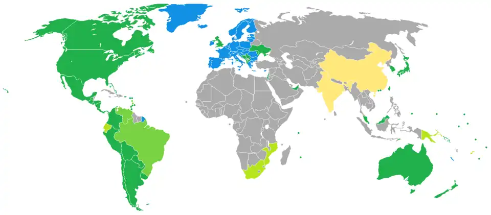 - ^ Except Brazil, Georgia, Kosovo and Venezuela.
