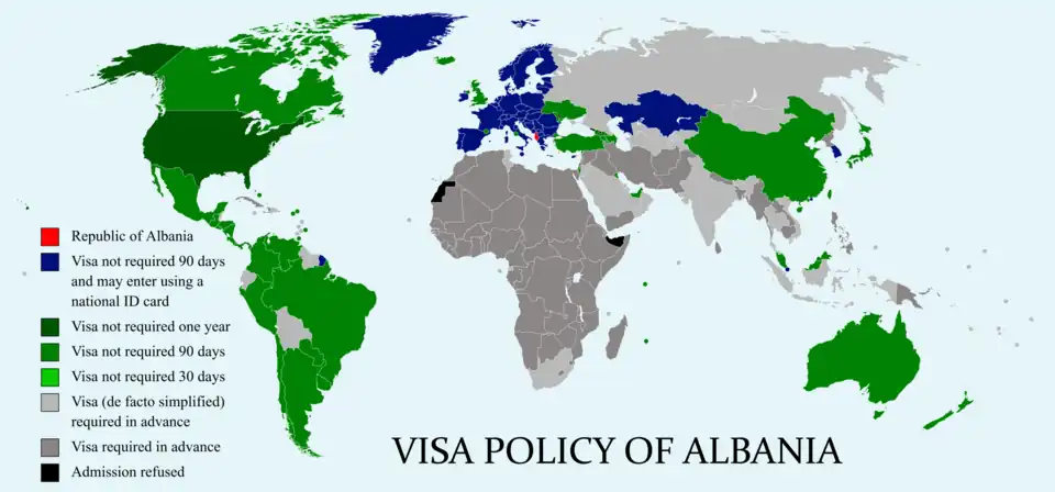 - ^ "Visa regime for foreign citizens". punetejashtme.gov.al. Retrieved 2022-10-23.