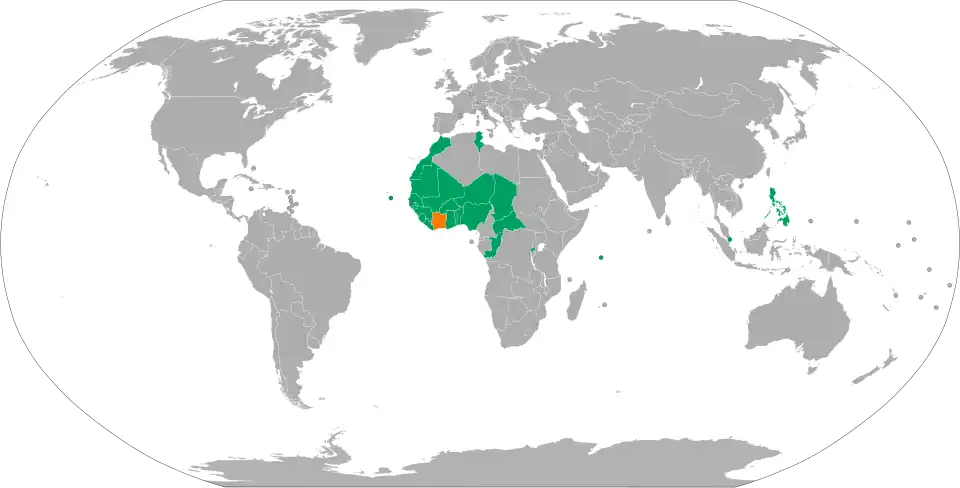 - ^ a b c d "Liste des pays avec ou sans visa d'entrée" (PDF). MINISTERE DES AFFAIRES ETRANGERES (in French). Ministry of Foreign Affairs (Ivory Coast). 15 March 2013. Archived from the original (PDF) on 22 September 2017. Retrieved 4 July 2023.