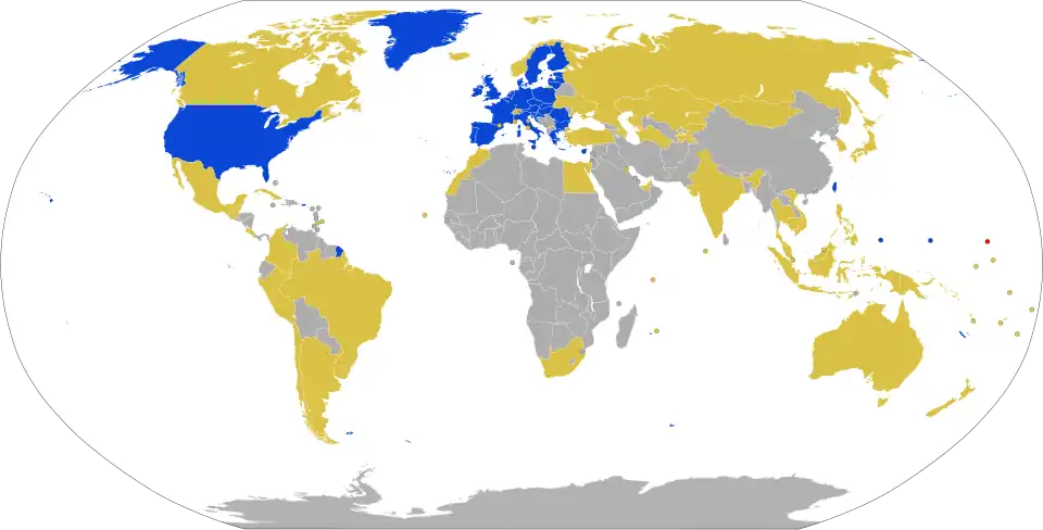 Marshall Islands signed mutual visa-waiver agreements with Saint Kitts and Nevis on 29 October 2019 and Ukraine on 28 November 2019 but they are yet to be ratified.[3][4]