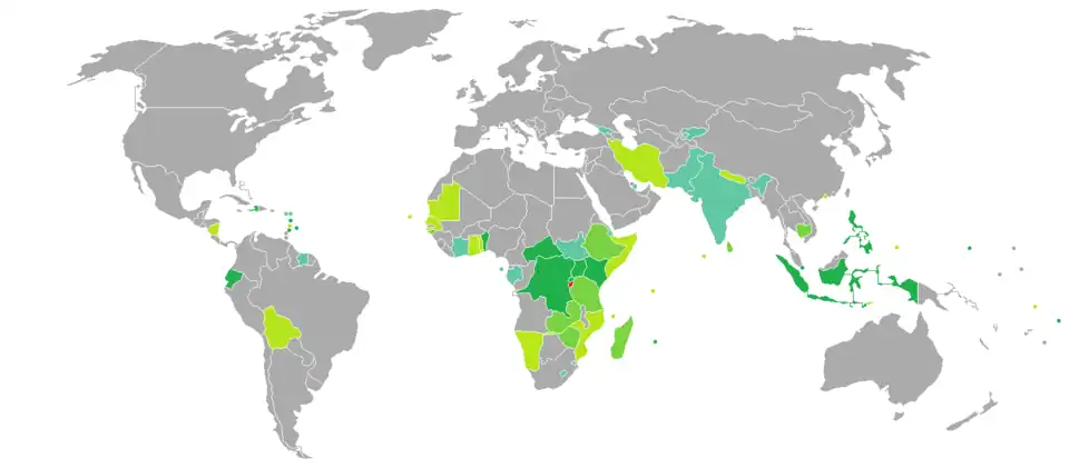 - ^ Country list - Yellow fever vaccination requirements and recommendations; and malaria situation; and other vaccination requirement