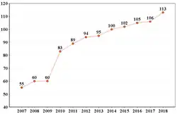 - ^ "DISTRIBUTION OF ARRIVING FOREIGN VISITORS (2016-2018) JANUARY-DECEMBER". Archived from the original on 14 July 2019. Retrieved 24 February 2019.