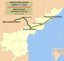 - ^ "Timings and stoppages of Vande Bharat Express between Visakhapatnam and Secunderbad released". The Hindu. 13 January 2023. ISSN 0971-751X. Retrieved 14 January 2023.