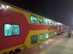 The 22707 / 22708 Visakhapatnam – Tirupati AC Double Decker Express is a superfast train belonging to South Coast Railways of Indian Railways connecting Visakhapatnam and Tirupati both in the Indian state of Andhra Pradesh.[1][2] as of now it is the only overnight intercity express operated in Indian Railways network and it is the longest operational Double Decker express of Indian Railways.
