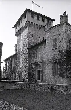 Buildings at the site date from the 9th century; a fortress, from the 13th century. In 1448, the brothers Francesco and Guido Visconti, took refuge in this town and castle from the forces of the Ambrosian Republic. They divided the landholdings and portions of the castle. The fortress has been amalgamated from adjacent residences, all once surrounded by a single moat. From the brother Francesco, who owned the newer portion of the castle, descend the Visconti di San Vito; while from Guido, who owned the lower and older portions of the castle, descend the Visconti di Modrone.[1]