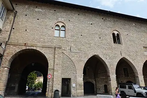 In 1355, Bernabò Visconti initiated the construction of the Citadel to consolidate his power over Bergamo.[2] The Citadel incorporated a pre-existing fortress and part of the nearby medieval walls. It belonged to the defensive system of the Città Alta of Bergamo, strengthening the western sector on San Giovanni Hill and integrating the fortification in the eastern sector on Sant'Eufemia Hill. The Citadel comprised an enclosure fortified with towers. It was closed to the north by the Hospitio Magnum, the seat of a military garrison.[1]