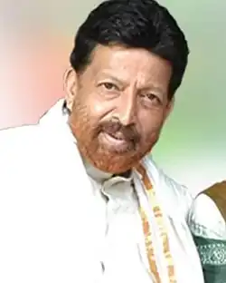 Sampath Kumar (18 September 1950 – 30 December 2009), known by his stage name Vishnuvardhan, was an Indian actor who worked predominantly in Kannada cinema besides also having sporadically appeared in Tamil, Hindi, Telugu and Malayalam language films.[2] Vishnuvardhan has a prolific career spanning over four decades, during which he has acted in more than 220 films.[3] A popular cultural icon of Karnataka, and holds the status of a matinée idol among the Kannada diaspora. He is popularly called as Sahasa Simha, Dada and The Angry Young Man of Kannada Cinema.[4][5] Vishnuvardhan's contributions to Kannada cinema have been praised by his contemporaries in the Indian film industry.[6][7] The Government of Karnataka honoured him with the Rajyothsava Prashasthi in 1990 and the Dr. Rajkumar Lifetime Achievement Award in 2007 for his contributions to Kannada cinema.[8] He was called The Phoenix of Indian Cinema.[9][10] In 2008, a poll conducted by CNN-IBN listed Vishnuvardhan as the most popular star in the Kannada film industry.[11]