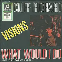 "Visions" is a song released in 1966 by Cliff Richard. The song spent 12 weeks on the UK's Record Retailer chart, peaking at No. 7,[2] while reaching No. 1 in Israel,[3] No. 1 in Malaysia,[4] No. 1 in Singapore,[4] No. 4 on the New Zealand Listener chart,[5] and No. 9 on the Irish Singles Chart.[6] The song was a hit in other nations as well.