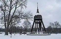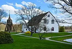 On an island opposite the church lies church memorial park (Minneslunden). Opposite the church, on the other side of the Lyckebyån, are church stables for some 200 horses. These were built in 1855 and in use until the late 1930s. The old county road ran along the stables and then crossed the river via an arched bridge, which was demolished in 1937. Since 1948 the stables accommodate a local museum with old tools and household items from the area, and it is the location for Midsummer festivities.[3]