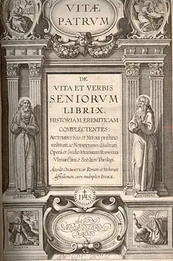 Rosweyde's Vitae Patrum consists of ten books. Book I has the lives of sixteen saints under the title Vitae virorum and eleven saints under the title Vitae mulierum, beginning with St. Paul the Hermit and St. Anthony of the Desert, and including women saints such as Saint Mary the Harlot. Books II, Historia monachorum, and III, Verba seniorum (Sayings of the Elders), are attributed to Rufinus, who was later found to be only their translator. Book IV is a compilation of writings by Sulpicius Severus and John Cassian. Book V is another collection of Verba seniorum from Latin and Greek by Pelagius.[3]