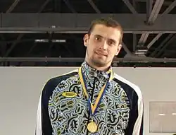 Vitaly Mikhailovich Medvedev (Ukrainian: Вiталiй Михайлович Медведєв, born 7 May 1983) is a fencer who specializes in the épée. He was born in the Uzbek SSR, Soviet Union. His family then moved to the Lithuanian SSR, and in 1990 to Crimea, Ukrainian SSR, where he started fencing at the age of 11.He competed at the 2008 Summer Olympics and finished in seventh place with the Ukrainian team.[1][2] In 2013, he won a silver and a bronze medal in the team épée at the world and European championships, respectively.