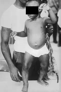 - ^ Nabeta HW, Kasolo J, Kiggundu RK, Kiragga AN, Kiguli S (September 2015). "Serum vitamin D status in children with protein-energy malnutrition admitted to a national referral hospital in Uganda". BMC Research Notes. 8 418. doi:10.1186/s13104-015-1395-2. PMC 4562347. PMID 26346815.