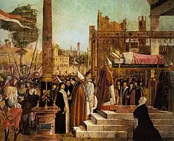 Carpaccio paid special attention to architecture, depicting buildings precisely and accurately to ensure that his paintings reflected the new architectural elements in Venice.[3]