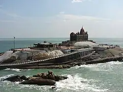 Vivekananda Rock Memorial is a monument and popular tourist attraction in Kanyakumari, India's southernmost tip.[1] The memorial stands on one of the two rocks located about 500 meters off mainland of Vavathurai, Tamil Nadu. It was built in 1970 in honour of Swami Vivekananda, who is said to have attained enlightenment on the rock.[1][2][3][4]