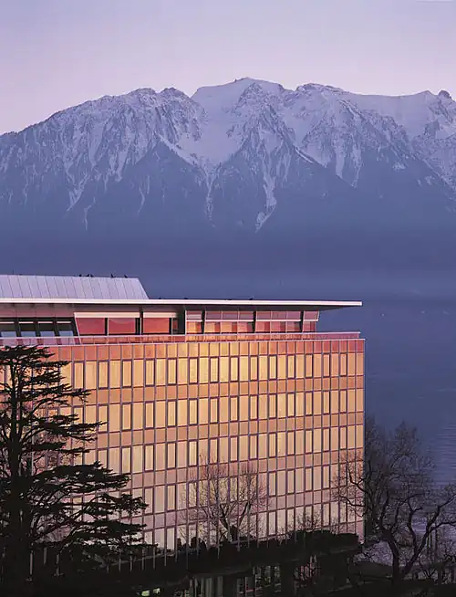 There are 14 structures in Vevey that are listed as Swiss heritage site of national significance. The four museums on the list are: the Alimentarium (fr); the Museum de la Confrérie des Vignerons (fr); the Museum Jenisch; the Museum suisse de l’appareil photographique (fr). There are three churches: the Roman Catholic Church of Notre-Dame; the Orthodox Church of the Great Martyr Barbara;[16] the Swiss Reformed Church of Saint-Martin. The other seven buildings are: the Administration Building and Historical Archives of Nestlé SA; Aile Castle; the Cour au Chantre; the City Hall; the Hôtel des Trois-Couronnes; the La Grenette and Place du Marché; the Saint-Jean Tower and Fountain.[17]