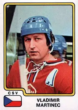 Vladimír Martinec (born 22 December 1949) is a Czech former ice hockey player. He played as a right winger during the 1970s and early 1980s, and won the Golden Hockey Stick award as top player in Czechoslovakia four times, in 1973, 1975, 1976, and 1979. Internationally, he played for the Czechoslovakia men's national ice hockey team, and was inducted into the IIHF Hall of Fame in 2001.