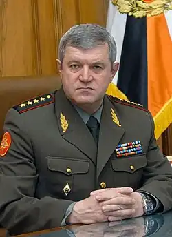 Born on November 25, 1953, in the village of Cheremkhovo, Ivanovsky District, Amur Oblast, RSFSR, son of a military man.[1] Since 1971 he served in the Armed Forces of the USSR. In 1975 he graduated from the Far Eastern Higher Combined Arms Command School. He served as a platoon, company, and battalion commander in the Carpathian Military District. In 1986 he graduated from the Frunze Military Academy. In 1986-1993 he served as regiment commander, chief of staff of a division in the Transbaikal Military District. In 1995, he graduated from the Military Academy of the General Staff of the Armed Forces of Russia and was appointed commander of the 18th Guards Motor Rifle Division of the 11th Army Corps. Since January 1998, Chief of Staff, and since December 1999, Commander of the Ground and Coastal Forces of the Baltic Fleet. By decree of the President of Russia on September 17, 2001, he was appointed chief of staff and first deputy commander of the Siberian Military District. On December 13, 2001, he was awarded the military rank of lieutenant general. On February 22, 2004, he was awarded the military rank of Colonel General. On January 5, 2005, he was appointed chief of staff and first deputy commander of the Volga–Ural Military District. Since June 6, 2005, he served as Commander of the Moscow Military District.[2] By decree of the President of the Russian Federation of February 23, 2007, he was awarded the military rank of army general.[3] From February 5 to May 18, 2009 - Deputy Commander-in-Chief of the Ground Forces of the Russian Federation.[4] By decree of the President of the Russian Federation of May 18, 2009, he was relieved of his position and discharged from military service into the reserve.