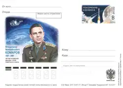 Vladimir Mikhaylovich Komarov[a] (Russian: Владимир Михайлович Комаров, IPA: [vlɐˈdʲimʲɪr mʲɪˈxajləvʲɪtɕ kəmɐˈrof]; 16 March 1927 – 24 April 1967) was a Soviet test pilot, aerospace engineer, and cosmonaut. In October 1964, he commanded Voskhod 1, the first spaceflight to carry more than one crew member. He became the first Soviet cosmonaut to fly in space twice when he was selected as the solo pilot of Soyuz 1, its first crewed test flight. A parachute failure caused his Soyuz capsule to crash into the ground after re-entry on 24 April 1967, making him the first human to die in a space flight.[1]